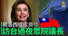 裴洛西行程受矚!或成首位訪台過夜眾院議長