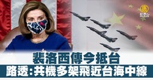 裴洛西傳今抵台 路透:共機多架飛近台海中線