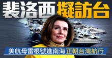 裴洛西擬訪台 美航母雷根號進南海正朝台灣航行