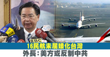 2018-05-23 20:35:11繼續看到,中共點名36家外籍航空公司,逼迫在網站矮化中華民國台灣,期限剩下三天。總統蔡英文昨天罕見重話回擊。美聯社調查發現,有16家仍未屈從中共的要求。外媒也質疑,大陸航空公司,就把台灣列為國際航班。台灣外長吳釗燮今天表示,美國有可能反制中共。
