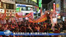 2018-11-23 21:01:41再來看到,嘉義市的選舉傳統,要在選前之夜(23日),聚集在噴水圓環造勢,號稱選前大車拚,像是一場民主嘉年華會。而嘉義市長選舉三強鼎立,選情緊繃到最高點,各候選人陣營無不全力以赴。