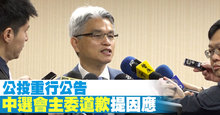 2018-11-19 21:28:38中選會10月24日公告公投案,11月2日納入行政院意見書重行公告,被行政法院裁定違反「投票日前28天前」公告的規定。國民黨團要求中選會主委陳英鈐下台,陳英鈐(19日)在立法院道歉,並提出其它方案。不過司法院官員說,需要法律明文規定才可以。