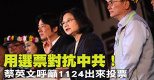 用選票對抗中共!蔡英文呼籲1124出來投票