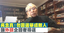 2018-11-21 12:42:25再過三天就要投票了,導演 吳念真昨天深夜在臉書直播,談到目前的台灣選舉現象,他有感而發的說,我們如果因為政治選擇不同而成為敵人,可能會讓外頭的有企圖者有機可乘。