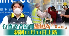 台確診者隔離縮短為「5+n」新制11月14日上路