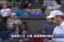 2011-06-21 21:40:04星期一(20日)溫布頓網球錦標賽開賽,西班牙蠻牛納達爾、第四種子,英國希望莫瑞擊敗西班牙選手基曼諾,成功獲得晉級;在女子組方面,則由芝芙娜瑞娃和大威廉斯勝出。