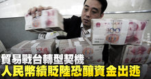 貿易戰台轉型契機 人民幣續貶陸恐釀資金出逃