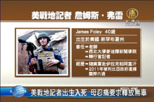 2014-08-21 21:30:44美國戰地記者弗雷遭伊斯蘭國分子斬首,震驚全球,痛心的母親在第一時間挺身,呼籲釋放所有無辜的新聞從業人員,感謝兒子為自由世界觀眾的付出。
