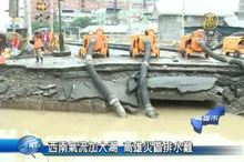 2014-08-10 21:03:32哈隆颱風北上侵襲日本,西南氣流狂掃台灣西南部地區,造成豪大雨。而高雄氣爆災區下水道、排水系統被炸毀加上雨勢,造成災區嚴重積水。水利局長表示,目前已經採用分流的方式,減少災區的積水 。