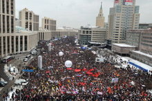 2012-03-26 22:19:55星期天(25號),在俄羅斯首都莫斯科,俄羅斯人民聯盟在克林姆林宮外舉行第二天的遊行示威,要求取消杜馬選舉跟抗議總統大選不公,但遭到了莫斯科警方的干預,不但驅散了抗議群眾,並逮捕了約30名的抗議者。