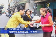 2015-12-26 20:15:02好,越接近選前,候選人都希望能找到有力人士來幫站台。前民進黨主席林義雄今天就陪綠社盟在台北市第八選區的立委候選人苗博雅掃街拜票,不過民進黨在這個選區支持的是無黨籍的李慶元,對此,林義雄說,值得他支持的人,他才會去助選。