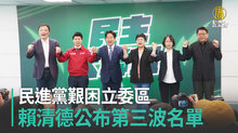 2023-06-14 19:09:57台灣2024國會議員大選,民進黨今天(14日)公布第三波艱困選區提名名單,新竹市徵召陽明交通大學教授林志潔,彰化縣第三選區徵召前北農總經理吳音寧,台北市大安選區,與社民黨台北市議員苗博雅合作。