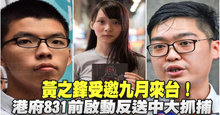 2019-08-31 20:06:43好,時間回到831集會的前一天,昨天,香港眾志秘書長黃之鋒和成員周庭,被香港警方逮捕,兩人在提交保釋金後獲釋。一天內,香港警方連續逮捕多名支持「反送中」知名人士及議員,被認為是意在製造白色恐怖,打壓香港民眾。香港眾志祕書長黃之鋒表示:將堅持反送中五大訴求,永不投降。