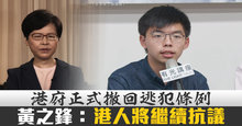 港府正式撤回逃犯條例 黃之鋒:港人將繼續抗議