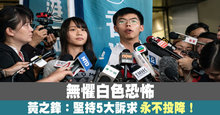 無懼白色恐怖 黃之鋒:堅持5大訴求 永不投降!