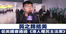 快訊!黃之鋒抵紐約 促美國會通過《港人權法》