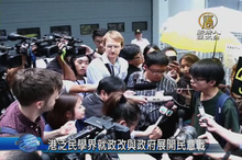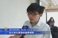 2015-08-27 20:19:12接著看到,香港雨傘運動學生代表黃之鋒、周永康和羅冠聰,去年因為衝進香港政府總部前的公民廣場,被警方立案起訴,今天他們現身批評當局政治打壓。