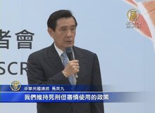 2016-04-25 20:16:53總統馬英九上午開記者會,發布任內第二次的兩公約國家報告,除了細數2009年批准兩公約以來,台灣政府的努力,但對於死刑議題,現行政策仍然是「維持死刑,審慎使用」。