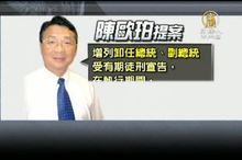 2012-09-30 21:37:01陳前總統因為涉及龍潭購地案和陳敏薰買官案,遭判貪污有罪,失去卸任元首醫療費禮遇,現在身體狀況惡化之際,綠營立委打算明天在司法委員會,提案修法「卸任總統副總統禮遇條例」,恢復陳前總統醫療禮遇,或是採取軟禁措施。不過國民黨立委吳育昇表達反對。