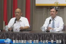 2016-09-05 12:36:38再來看到,總統府上個月擬出了「新南向政策綱領」,而行政院今天也正式公布「新南向政策推動計畫」,由政委鄧振中領軍 行政院經貿談判辦公室,協調統合16個部會執行,以亞太18個夥伴國做為目標市場,從四大面向推動新南向政策。