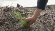 2018-04-06 20:56:16葡萄牙在去年發生多起森林火災,中部的萊里亞松樹林,超過80%的面積被大火摧毀,也改變了附近居民的生活。為了讓森林恢復原貌,有3000多名志工集結,在燒光的松樹林地上種下樹苗,一天就種下了6萬7500棵。