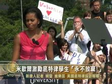 2010-05-29 22:36:01五月二十六日星期三,美國第一夫人米歇爾•歐巴馬在底特律市韋恩州立大學體育場發表演說,激勵在場的一萬多名學生和家長重視教育,通過努力學習去實現自己的夢想,承擔起未來的責任。同時力所能及地幫助朋友、家庭、社區乃至世界。這是歐巴馬伕人發起的“白宮對青年的領導和指導工作”(the White House Youth Leadership and Mentoring Efforts)的系列活動之一。請看本臺在底特律市的採訪報導: