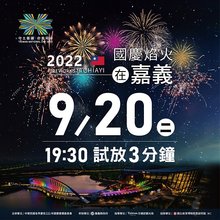2022-09-16 11:22:47國慶焰火睽違18年重返嘉義!9月20日晚間7點30分在故宮南院院區外西側試放,縣府表示,今年國慶焰火有別於過往,將整合多種媒介一起演出,這次4分鐘焰火試放,將包含1分鐘水舞光雕,讓民眾提前感受國慶熱鬧氛圍,也做為正式燃放前的暖身,邀請民眾進場觀看。