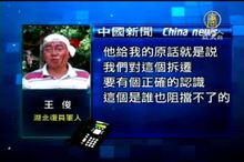 2011-07-14 21:18:54關心中國新聞報導。家住湖北省武漢市的一名軍人王俊,在中越戰爭中曾經立過二等功,現在卻被當地政府強拆逼遷,還被黑社會成員砍成重傷。王俊申訴無門,他認為現在的政府是公然與人民為敵。