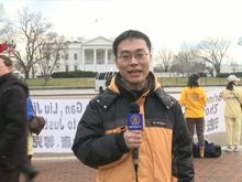 2011-01-19 21:11:1218日下午,正當胡錦濤抵達華府時,當地的法輪功學員在白宮附近舉行了抗議活動,呼籲停止迫害,懲辦元兇。