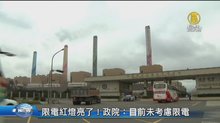 2017-08-07 20:05:22氣溫狂飆,用電量吃緊,也亮出了今年首顆限電警戒紅燈,時間就在今天下午兩點零九分,當時最高用電量為3616.54萬瓩,行政院發言人徐國勇表示,電力還在可因應範圍內,目前,並沒有考慮要限電。不過,根據台電預測,明天起到週五,還將連亮四顆紅燈,其中星期三到星期五,最危險。