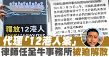 代理「12港人案」 律師任全牛事務所被迫解散