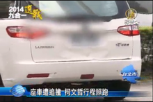 2014-11-16 21:09:33選戰倒數,參選人行程滿檔。無黨籍台北市長參選人柯文哲,今天(16日)在趕行程時,座車意外遭到追撞,柯文哲本人沒有大礙,但是嚇了一跳。