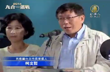 2014-11-29 21:31:35好,謝謝霆鋒。馬上帶您看到剛剛,柯文哲宣布當選的情況。