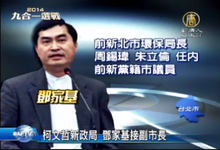 2014-12-01 21:15:17接著看到在台北市部分,無黨籍柯文哲當選台北市長後,不只在網路上公布選舉經費明細,還火速籌組內閣;繼新北市前環保局長鄧家基後,今天又公布了另一位副市長人選 林欽榮、以及衛生局長 黃世傑和體育局長 楊忠和。