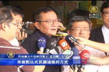 2014-03-18 21:45:56北市長之爭,國民黨昨天(17日)進行市長初選黨內領表,爭取國民黨台北市長提名的從六個人,變成四個人,台北市議員秦慧珠放棄,轉向支持丁守中。而今天(18日),同是國民黨立委的蔡正元,卻爆料競爭對手丁守中,違法收政治獻金,事後卻被丁守中亮出存摺,反將一軍 。