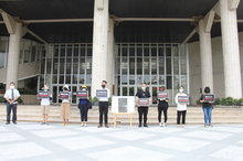 2021-07-05 16:52:19彰化喬友大廈的防疫旅館大樓火警,造成4死22傷悲劇。4日,受害者家屬找律師組自救會,到縣府前開記者會,要求縣府嚴查火災事故原因,釐清事件真相,還給受害者與家屬一個交代。