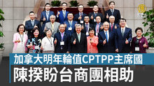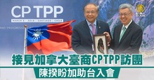 2023-09-20 19:07:47行政院長陳建仁,今天(20日)下午接見加拿大地區台灣商會CPTPP訪問團時表示,希望加拿大能盡早協助台灣加入CPTPP。團長游宗熙指出,加拿大將輪值明年CPTPP主席國,這次率團訪問,希望推動台灣加入、並促進台加雙邊投資。