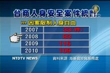 2011-02-15 21:13:51控訴中共侵害人權的,除了信仰團體,還有數以萬計的在中國大陸投資受害的台商。ECFA簽訂後,兩岸貿易往來會更頻繁,但從海基會的數據顯示,過去三年,發生兩岸經貿糾紛與台商人身安全的案件數,佔了過去廿年案件總量的一半。台灣新國策智庫在星期二舉行座談,與會專家學者就台商在兩岸關係中的角色提出建言,呼籲政府在兩岸協商時,資訊必需透明、態度要更強硬一些,勿讓台商成為兩岸關係裡的人質。