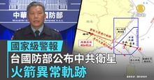 國家級警報 台國防部公布中共衛星火箭異常軌跡