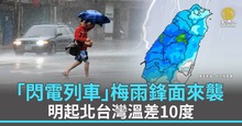 「閃電列車」梅雨鋒面來襲 明起北台灣溫差10度