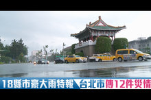 2015-08-18 20:18:35因為午後對流雲系發展旺盛,氣象局今天(18日)針對雙北市等11個縣市發布豪雨特報,另外對台中等7個縣市發布大雨特報,目前最大累積雨量,在台北市南港區的九如里,達到128毫米,而這場大雨也造成台北市12件災情;木柵路5段發生坍方,沒有造成人員受傷,文山區部分路段有輕微積水情形,但雨勢稍緩後,已經由下水道順利排除,而南港四分溪水位暴漲,目前水利處也派員警戒當中。
