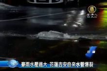2015-08-23 20:04:02中颱「天鵝」輕輕掠過,就讓花蓮單日降下195毫米的雨量,由於水壓突然變大,讓吉安鄉自強路地下水管爆裂,現場成小型噴水池,附近居民怕地基流失,嚇得連覺都不敢睡。