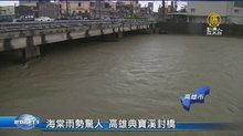 2017-07-31 21:24:38「海棠」颱風過境,造成南部地區降下驚人雨勢,高雄市大樹區的平安橋,昨天晚間九點多,遭到洪水淹沒,積水至少60公分,滾滾洪流還差點將騎士連人帶車沖走,幸好一旁的民眾及時救援,梓官區的典寶溪,也因為水超過警戒線,從上午6點40分,就封橋。