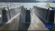 鯉魚潭水庫滿水位 「鋸齒堰溢流現美景」遊客搶拍