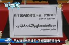 2014-11-13 21:03:34日本首相安倍晉三,12日和緬甸總統吳登盛會談,承諾要提供260億日圓貸款,藉此拉攏緬甸,同時聯手東協,加強雙方在安全方面的合,呼籲以國際法解決南海爭端,也引起外界議論。