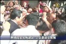 焦點轉回台灣。馬英九總統昨天(7號)到國父紀念館出席七七抗日紀念活動,巧遇熱情陸客,陸客不但照相,還伸手勾住馬總統的脖子,這就讓朝野立委看了都很緊張,直說國安出現漏洞,必須要檢討,而這也讓馬總統在今天的公開行程,身邊的隨扈更謹慎 ,寸步不離。