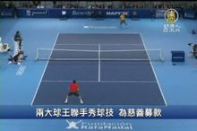 2010-12-23 22:38:31世界網壇的球王級人物納達爾和費德勒熱衷慈善事業,接連在雙方的故鄉舉行慈善比賽,星期三(12月22號),在納達爾的故鄉西班牙馬德里,再度上演兩大天王對決。在現場1萬多名觀眾的助威聲中,兩人大秀球技,讓球迷大飽眼福。