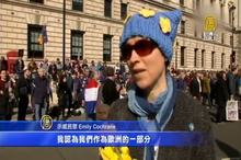 2017-03-26 20:24:40英國政府星期三將正式啟動脫歐程序,昨天,倫敦有上萬民眾遊行到國會廣場,表達反對脫歐的意願。