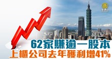 上櫃公司去年獲利增41% 62家賺逾一股本