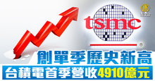 台積電首季營收4910億元 創單季歷史新高